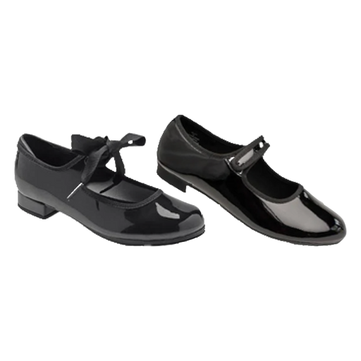Tan slip-on Jazz shoes of any kind, and black patent Tap shoes will be worn. Velcro is preferred. Capezio Lightsun footed or transition tights will be worn for recitals.